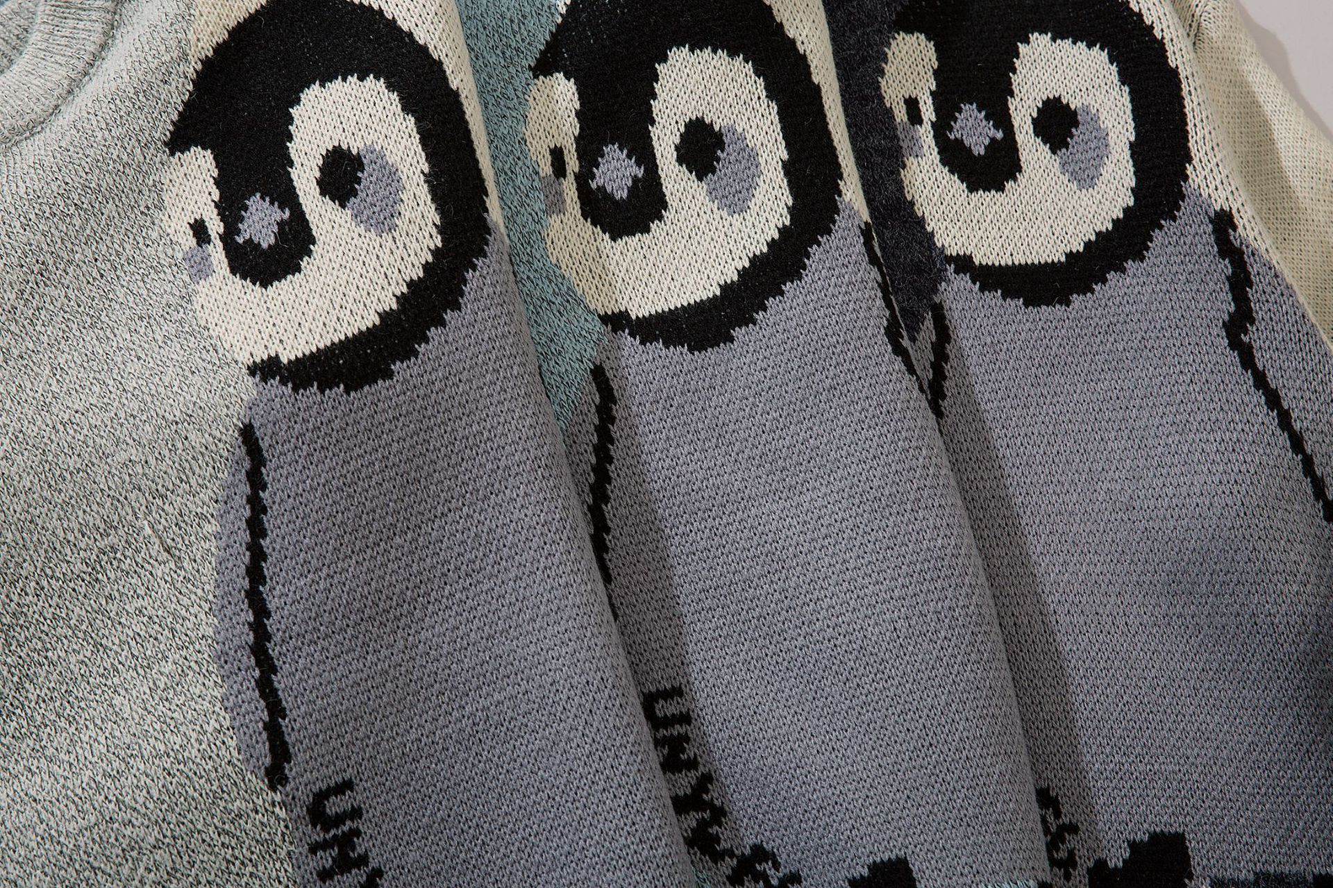 Mens Cartoon Penguin Knitted Sweater Streetwear Harajuku Vintage Jumpers Pullover Women Autumn Cotton College Sweaters Unisex