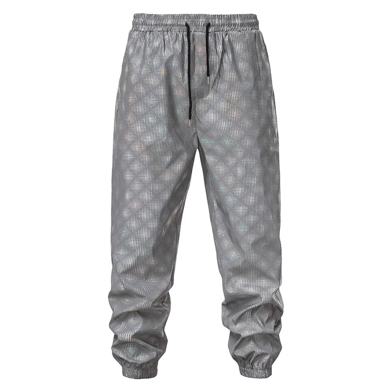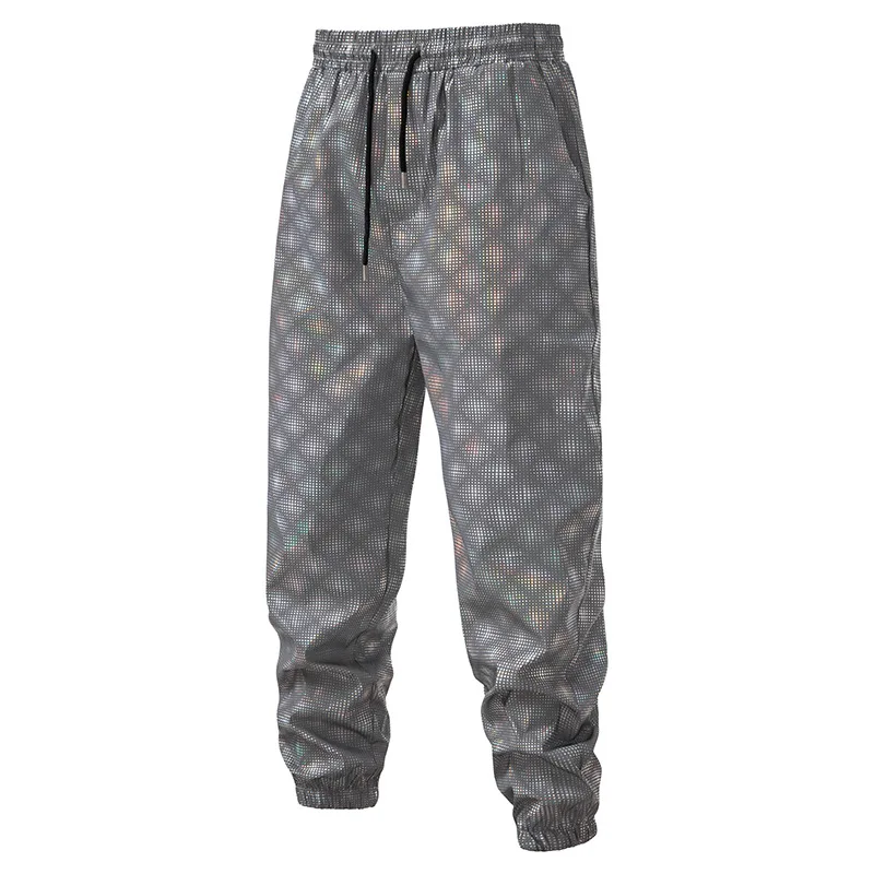 Mens Plaid Reflective Pants Casual Night Jogger Hip Hop Fluorescent Dance Party Sweatpants Festival Rave Night Sport Trousers
