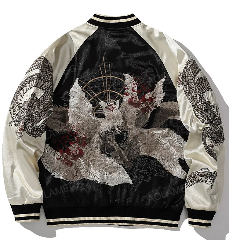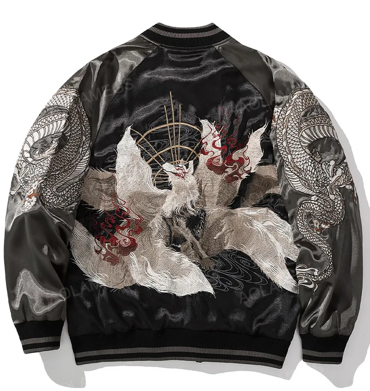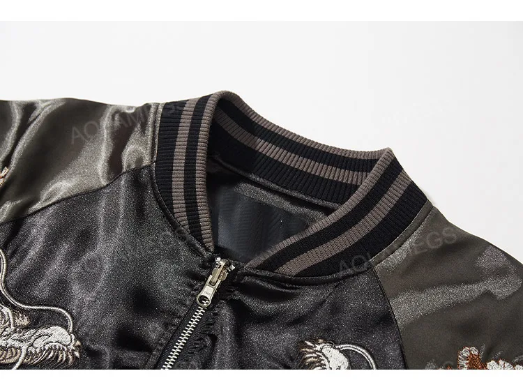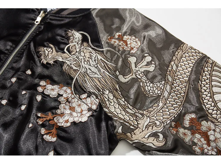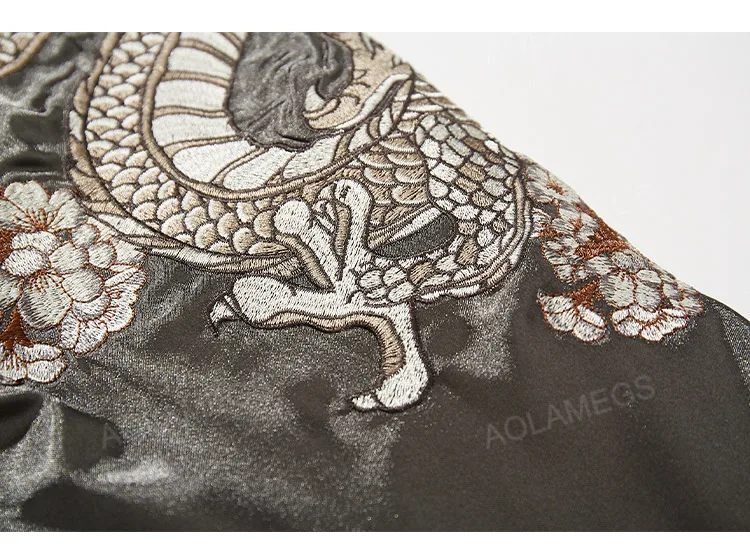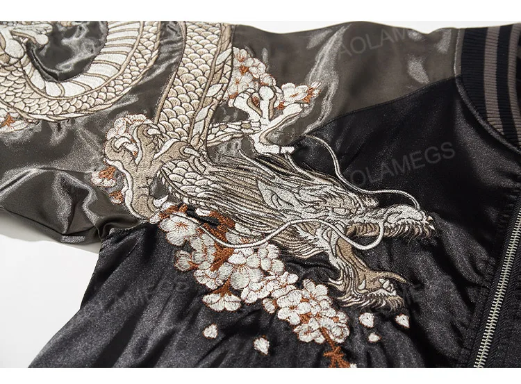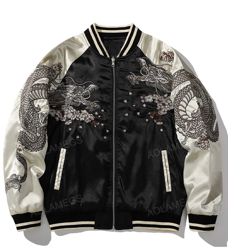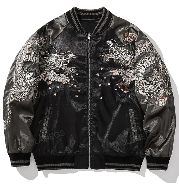 Men's Satin Jacket Hip Hop Streetwear Coats Chinese Style Dragon Embroidery Winter Jacket Parka Casual Fashion Baseball Uniform